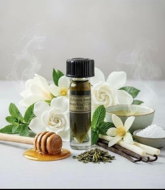 As the oud evolves into its heart, a bouquet of white florals emerges, enveloping the senses in a fresh and earthy embrace. This floral richness is complemented by a slight sweetness, interwoven with hints of incense that add depth and a mystical quality to the experience.